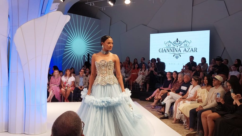 La maestra Giannina Azar estaba a cargo de destapar los desfiles de esta feria, seguida de Gabriela Azar con su colección «Pearls of the Sea» de Alvazar Atelier, inspirada en la elegancia atemporal del océano y la riqueza del arte barroco, es una colección de novias que celebra la feminidad con detalles majestuosos. Cada estancia está hecha de brocados de partida y adornada con perlas, cristales y bordados que evocan conchas marinas y joyas antiguas. La silueta clásica se reinterpreta con toques dramáticos y utensilios artesanales que reflejan un abundancia sereno, ideal para novias que buscan destacarse con sofisticación y carácter.