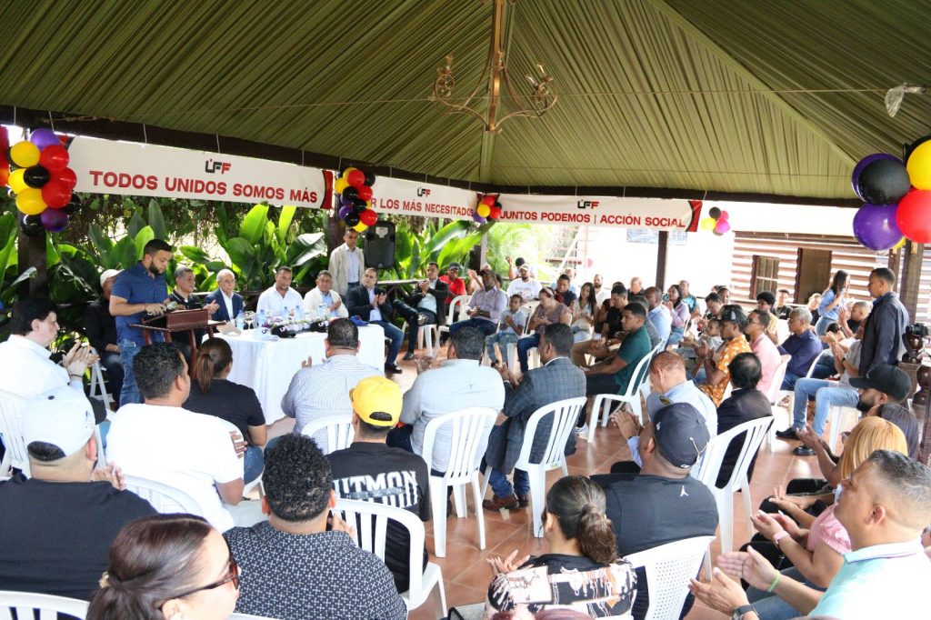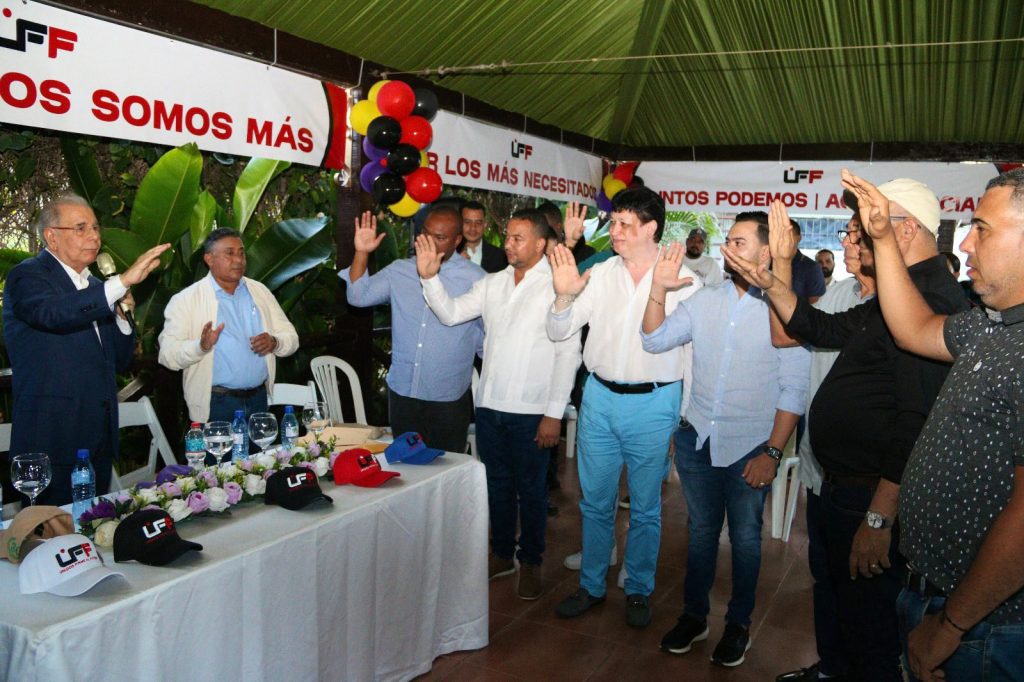 Hato Nuevo, Amina, Valverde.- El presidente del Partido de la Liberación Dominicana (PLD), Danilo Medina, juramentó al Movimiento Unidos Firmes al Futuro (UFF) este fin de semana, durante un acto realizado en la comunidad de Hato Nuevo, municipio de Amina, provincia de Valverde, pronunciando allí algunas palabras críticas sobre la situación económica, fiscal y social del país, atribuyendo la difícil situación del país a la error de visión, improvisación y corrupción del gobierno del PRM.