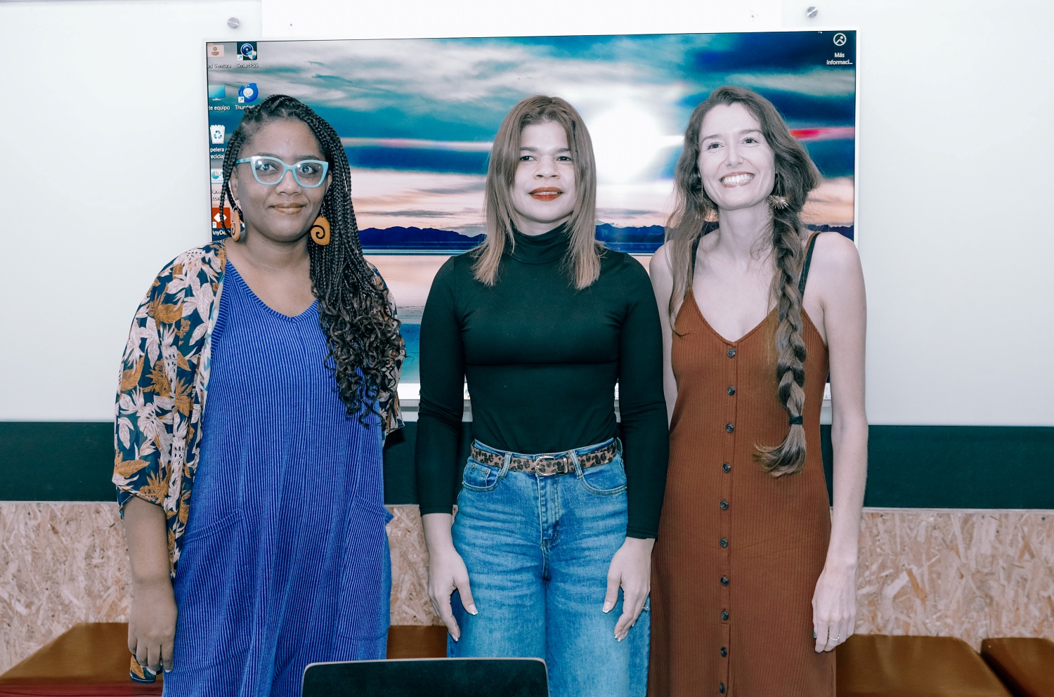 Alicia Méndez Medina, Ibeth Guzmán y Meaghan Coogan en el cuarto Festival de Escritura Dominicana, donde Guzmán fue homenajeada por sus aportes al campo poético y cultural. (Foto: FESD 2026)